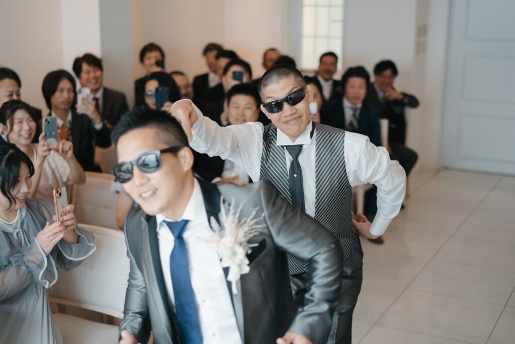 挙式の入場では弟さまとサングラスをかけて踊りながら登場されたり
