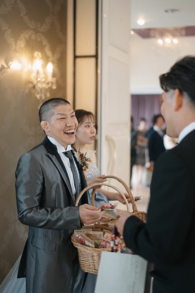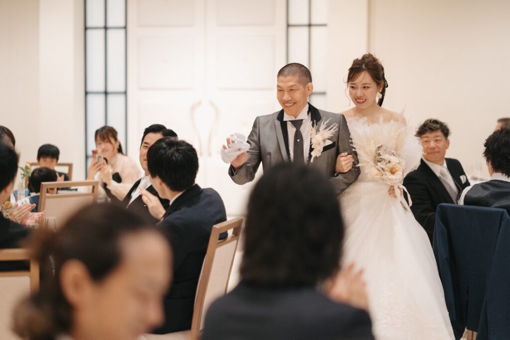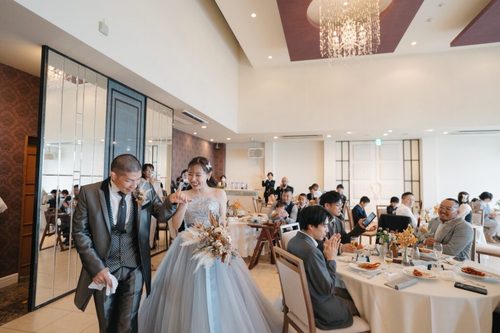 披露宴の退場では皆さまのテーブルを周りながら